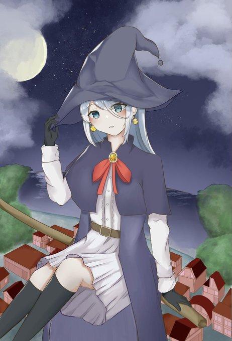 「夜空の魔女」 #絵描きさんと繋がりたい #イラスト #秋の創作クラスタさんと繋がりたい RT中心に巡回します!