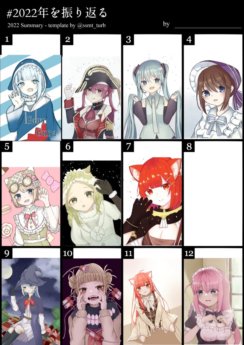 8 74 テンプレお仮しますm(_ _)m いっぱい二次創作した1年でした〜!背景が増えてきてよき! #今年描いた絵を振り返る ♡&RT巡回させて頂きますm(_ _)m #絵描きさんと繋がりたい 22/12/30 20:29