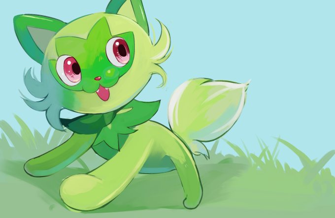 0 7 ニャオハ🐈🌿 #イラスト #ポケモン 22/08/04 10:53