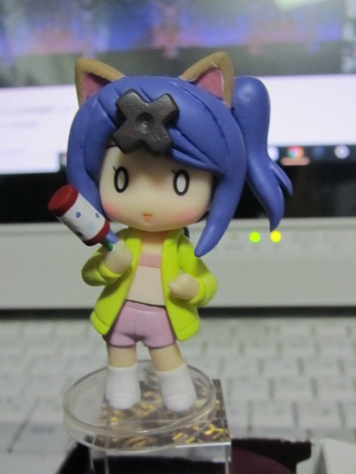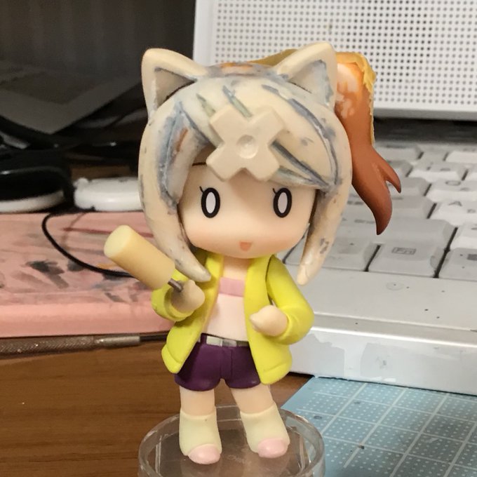 メイドTHEeちゃん 一回、気に入らなくて作り直したものの、やっぱり微妙に似なかった気がする_:(´ཀ`」 ∠): そのかわり、本体は数種類のフィギュアを組み合わせ 猫耳&しっぽもつけて、1番手間かけましたよ #インサぁーと #インサイドちゃんMark3 #フィギュア