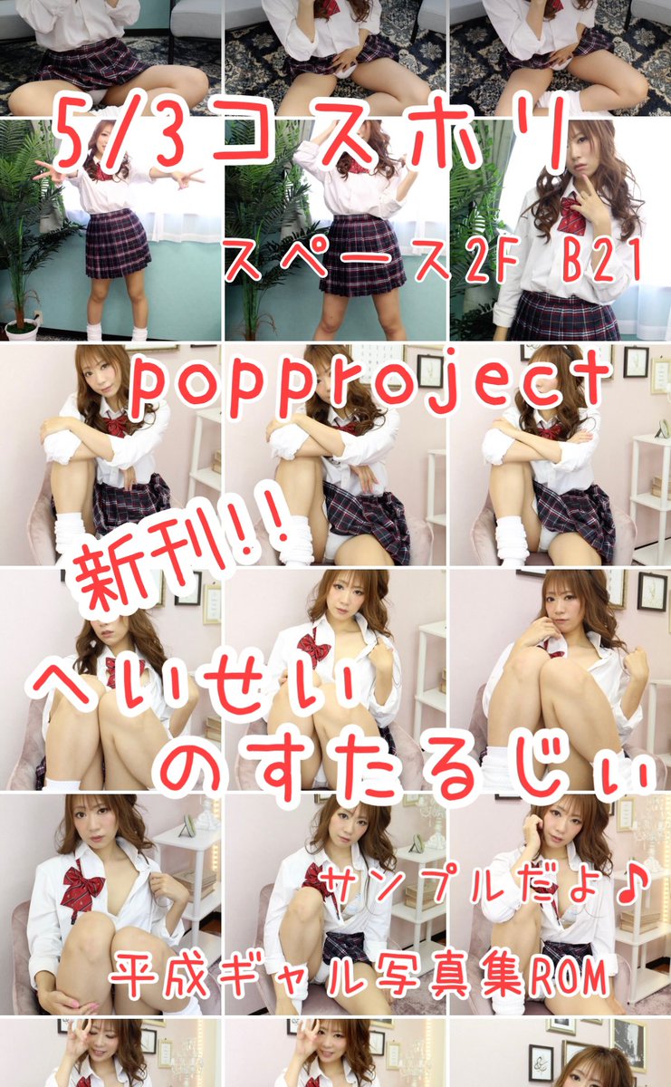 4 25 5/3 #コスホリ B21『popproject』 メンバーはKAREN、柏原天、十文字智花の3人💓 新刊は平成ギャル写真集ROMだよ♪ 当日の衣装は競泳水着予定🩱 撮影券やチェキ撮影も出来るので遊びに来てね😘 入場にはパンフレット購入が必要です! 23/04/30 23:42