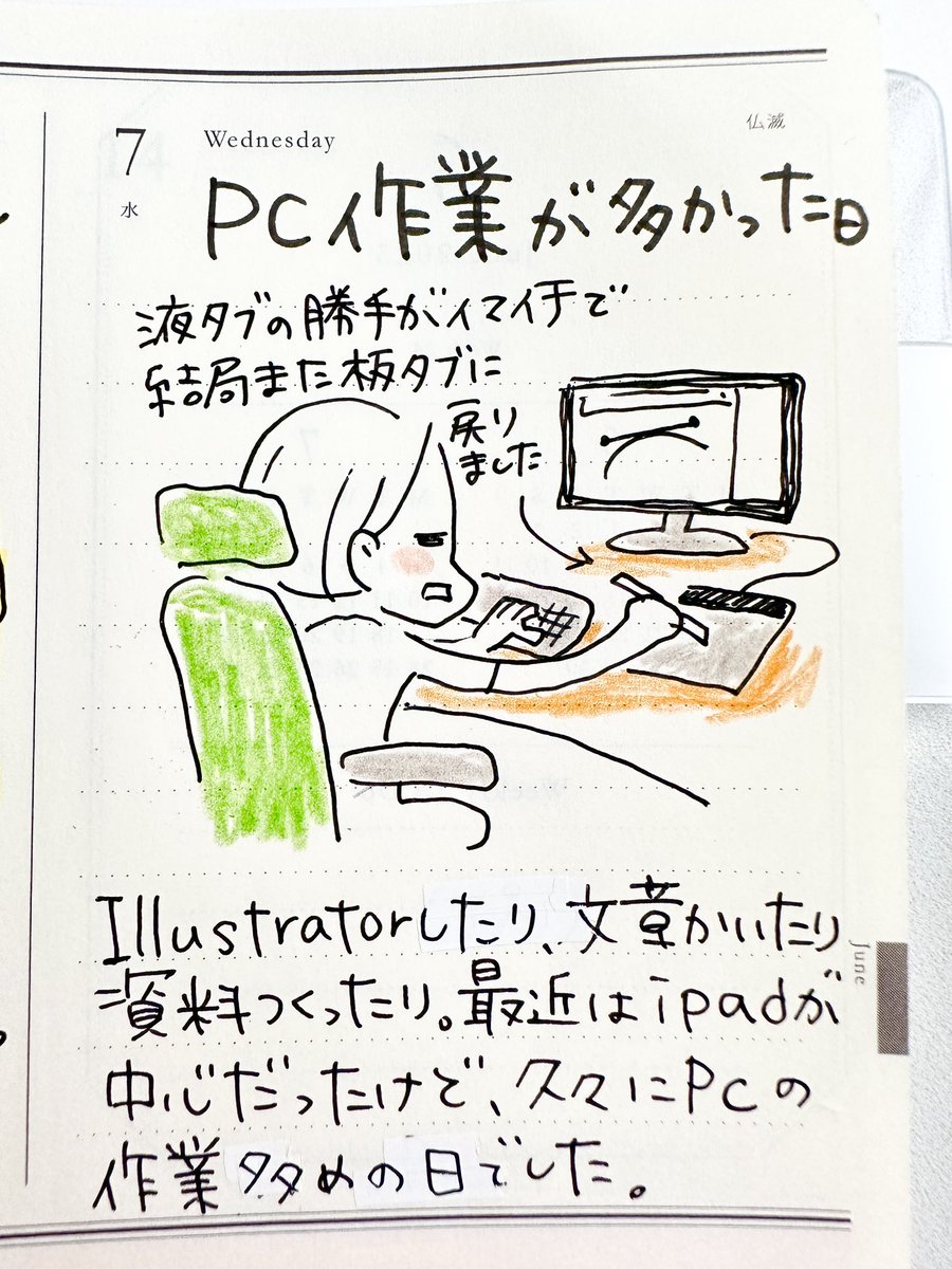イラストレーター絵日記 6/7 PC作業が多かった日でした🖥️ #絵日記