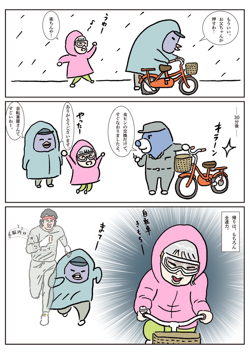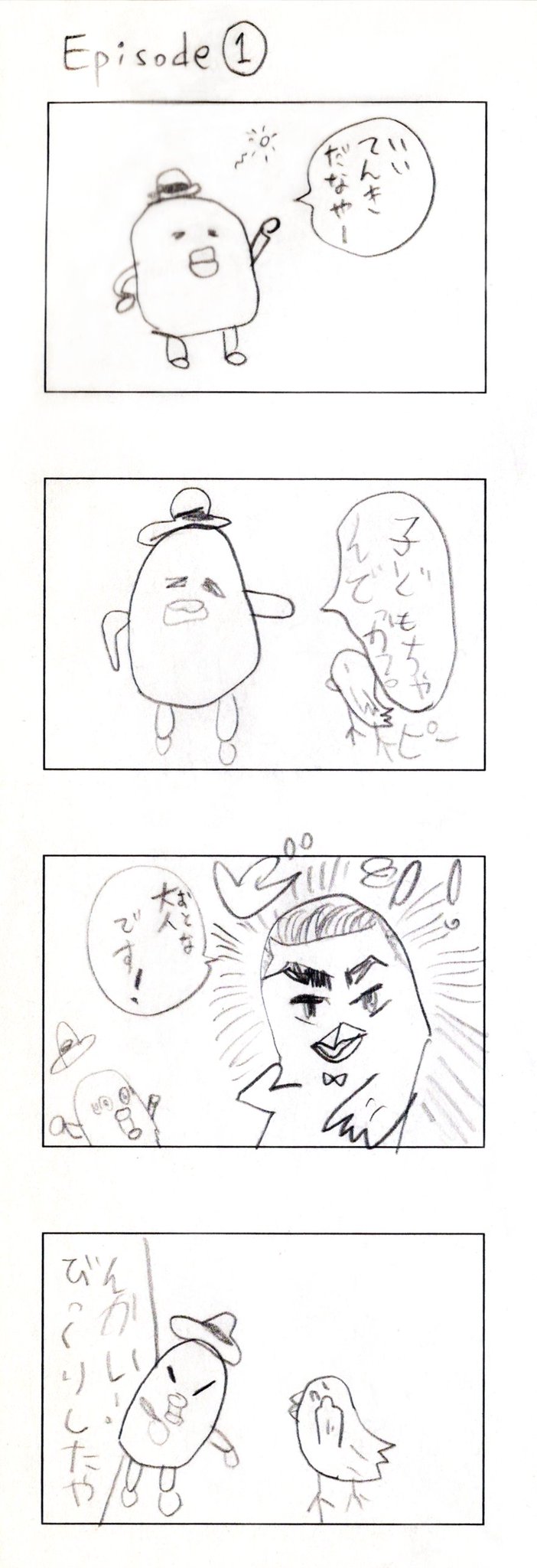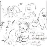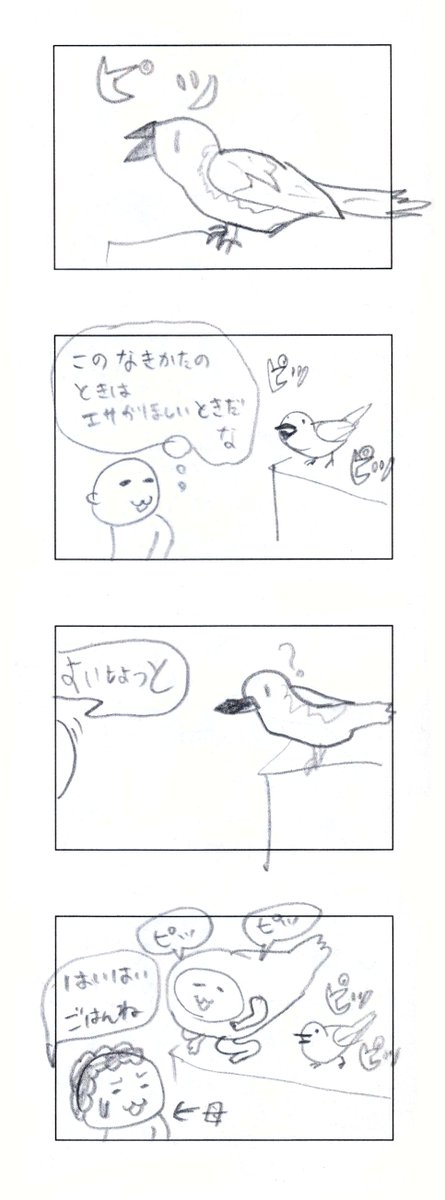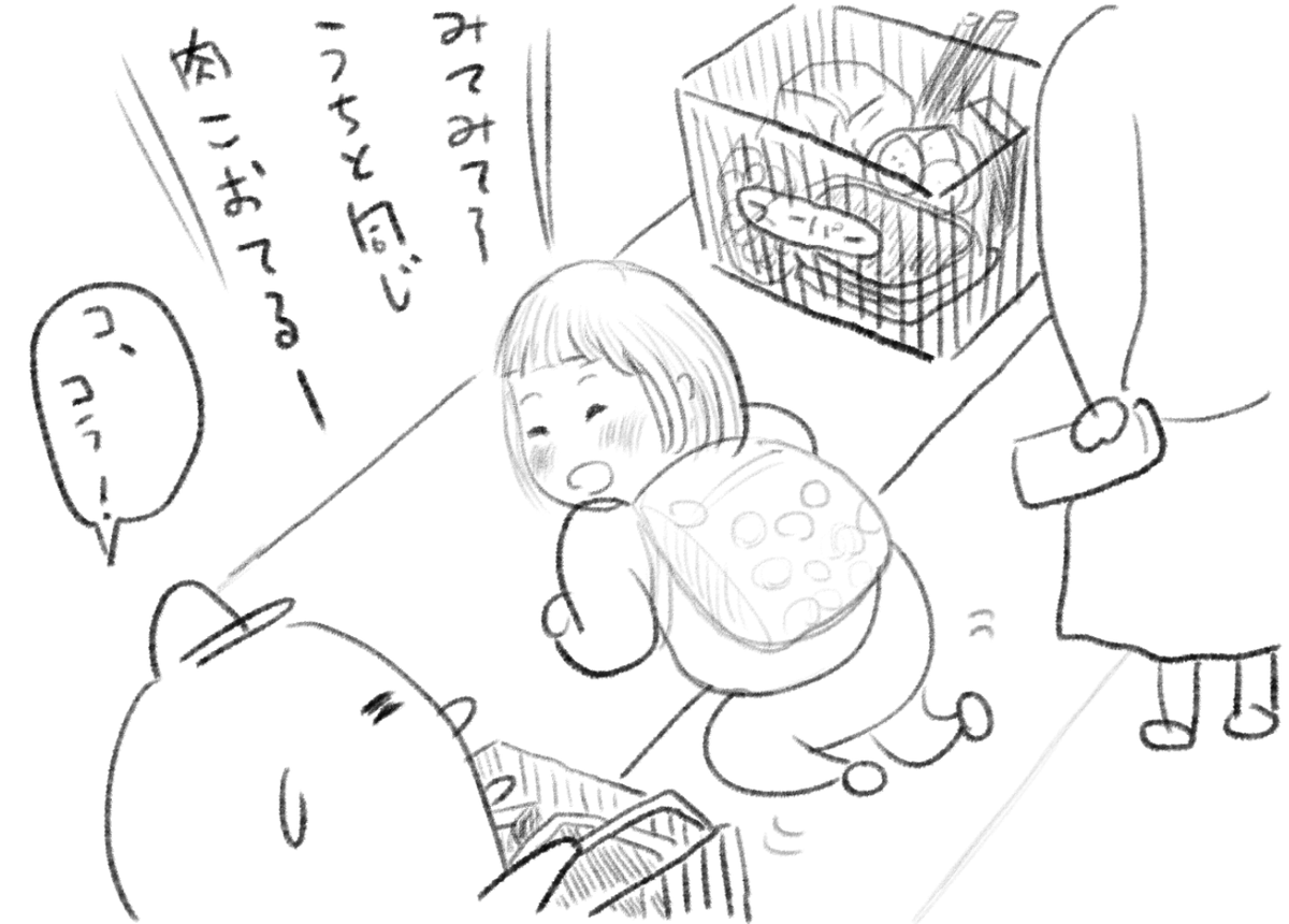 娘との共作4コマ漫画 その3 娘が年長さんの時に1コマずつリレー。娘は1コマ目と3コマ目、カミさんが2コマ目と4コマ目を担当。 #創作漫画 #4コママンガ #漫画が読めるハッシュタグ #絵描きさんと繋がりたい #育児漫画