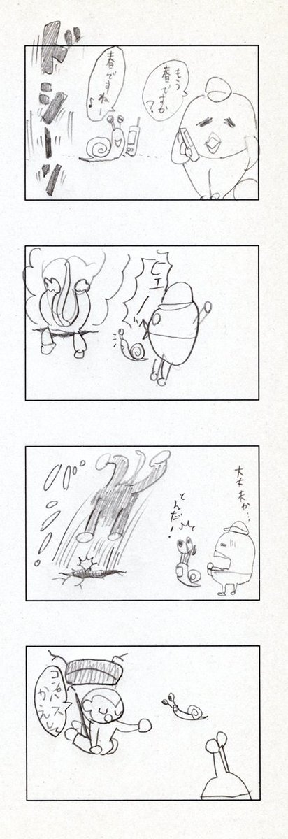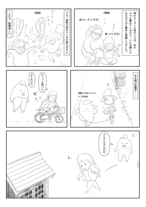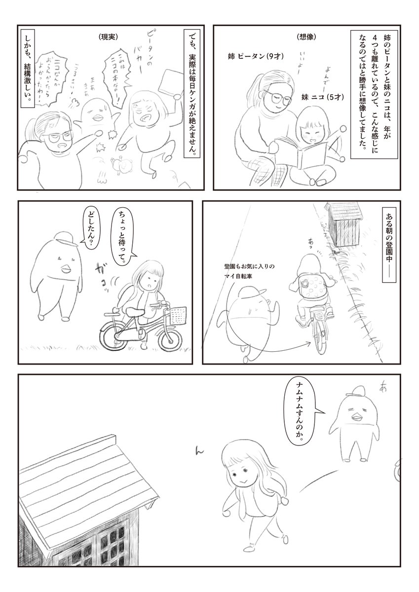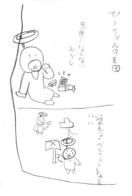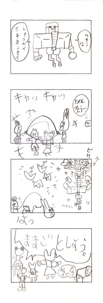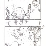 娘との共作4コマ漫画 その5 長女が年長さんの時に一緒に描いたよ。長女は2コマ目と4コマ目を担当。 #創作漫画 #4コママンガ #漫画が読めるハッシュタグ #絵描きさんと繋がりたい #育児漫画