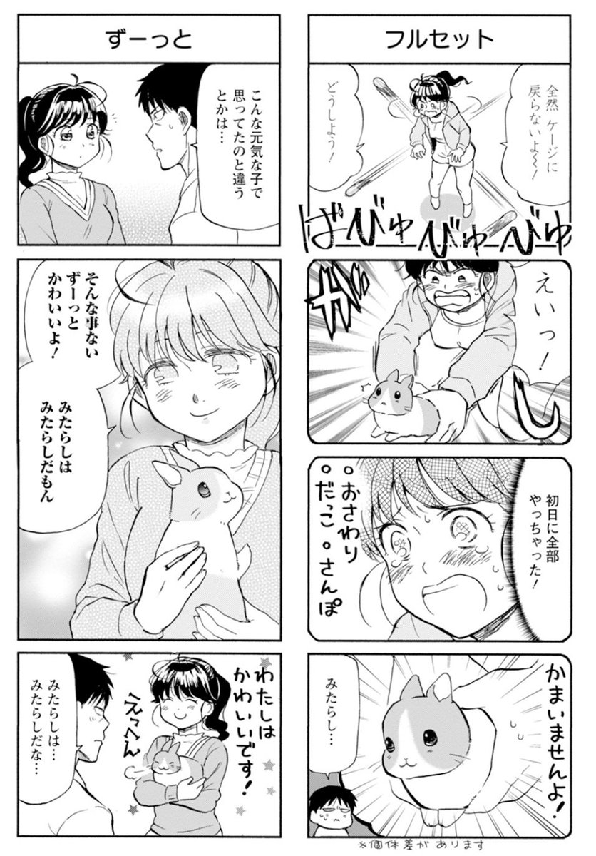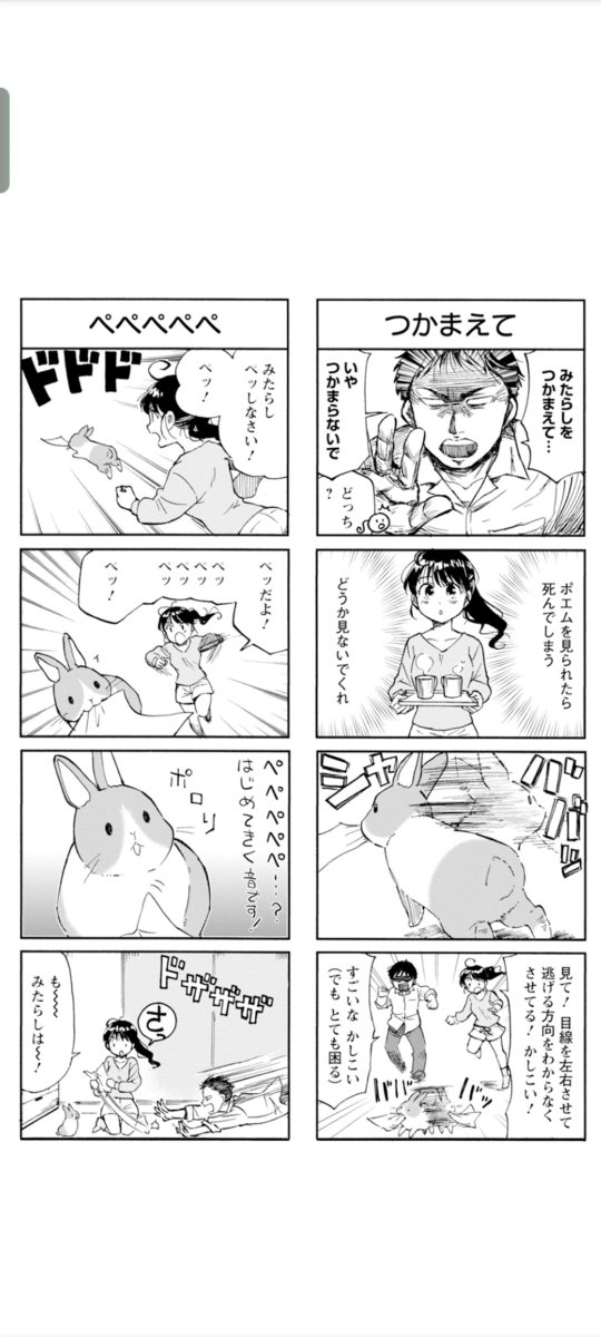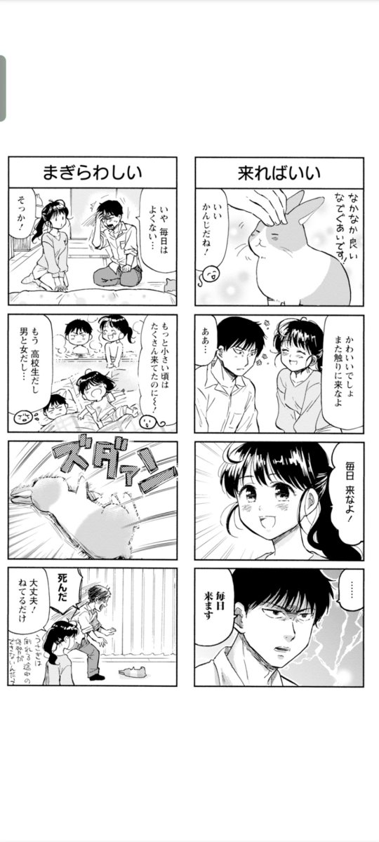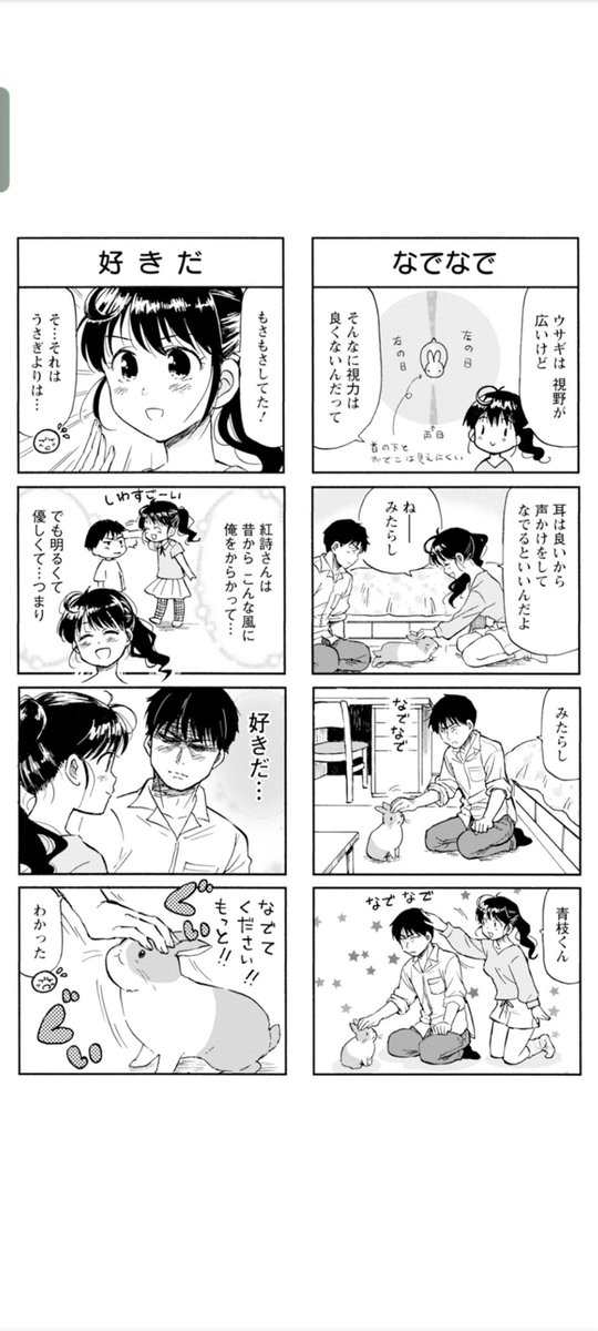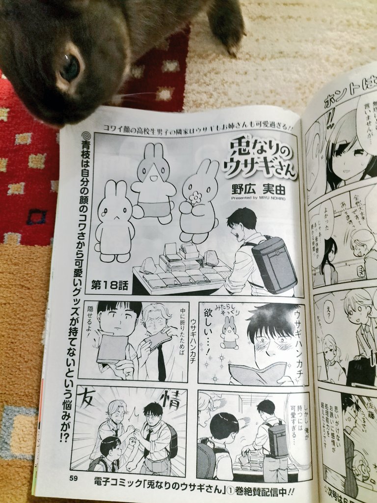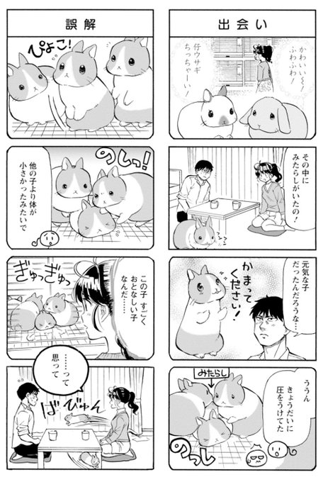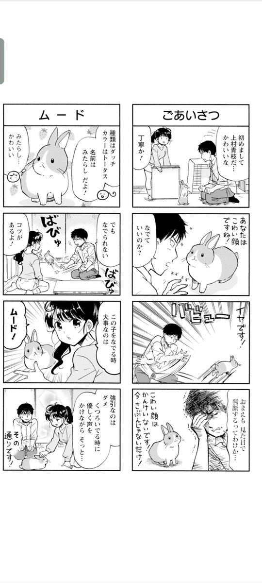 まんがタウンで連載中の「兎なりのウサギさん」一巻が電子書籍で明日、3月9日発売です! 可愛いうさぎのみたらしが走る!跳ねる!おやつを食べる!なでなでを要求する!ブラッシング!爪切り!飼い主の大学生紅詩さんと幼馴染の高校生青枝くんのラブコメも!よろしく! #うさぎ好きさんと繋がりたい