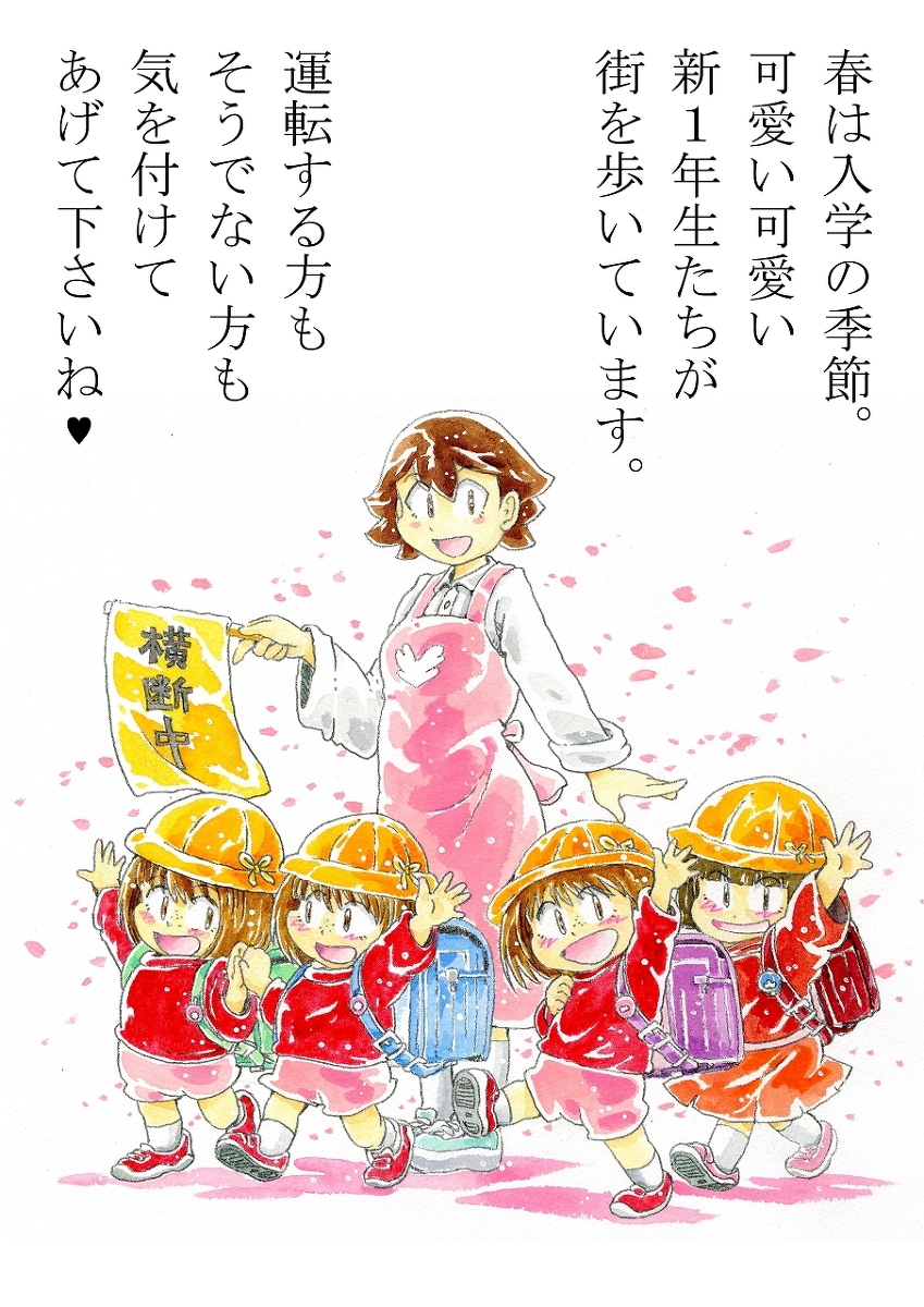 春の交通安全ポスター #アナログ #水彩 #オリジナル pixiv.net/artworks/10703…