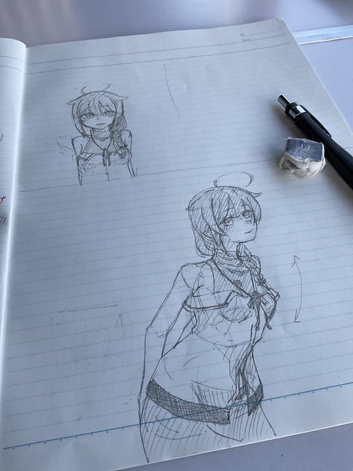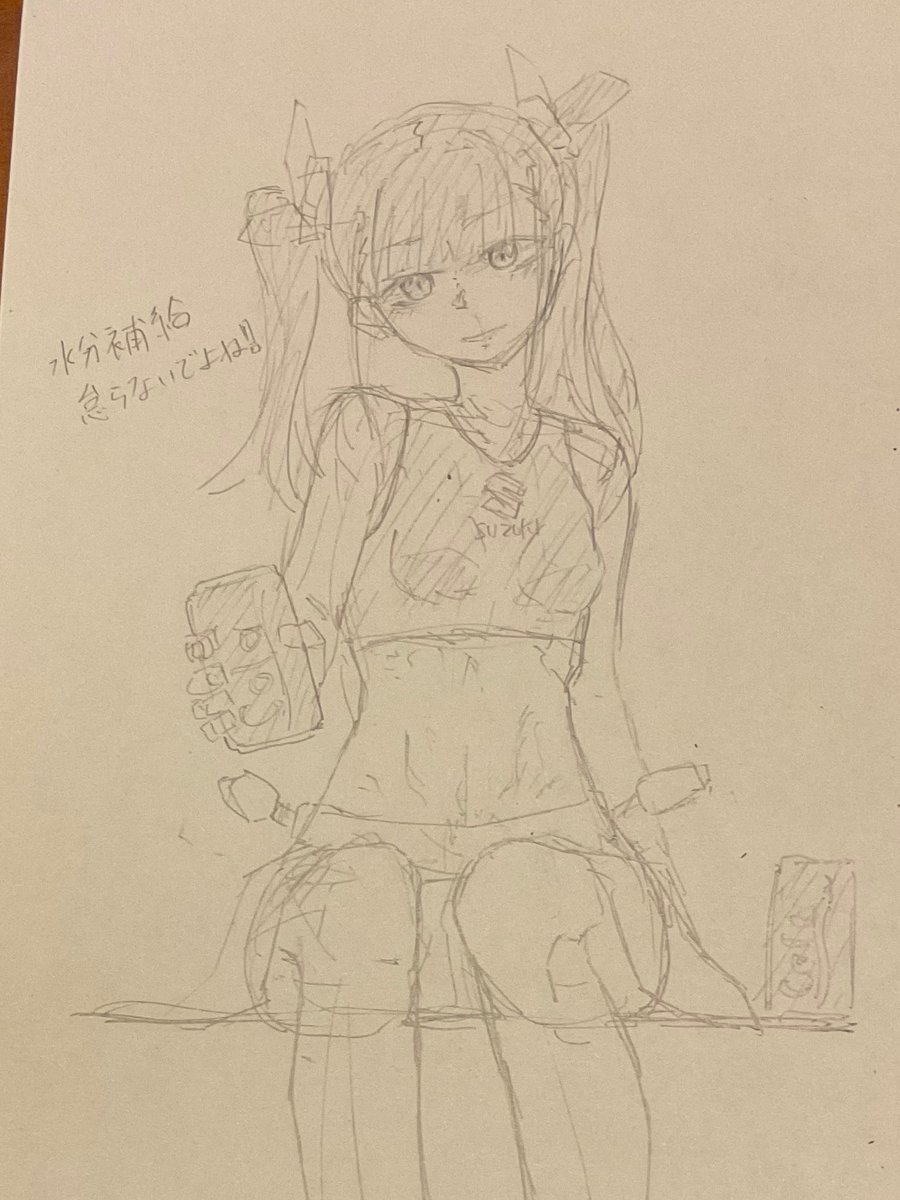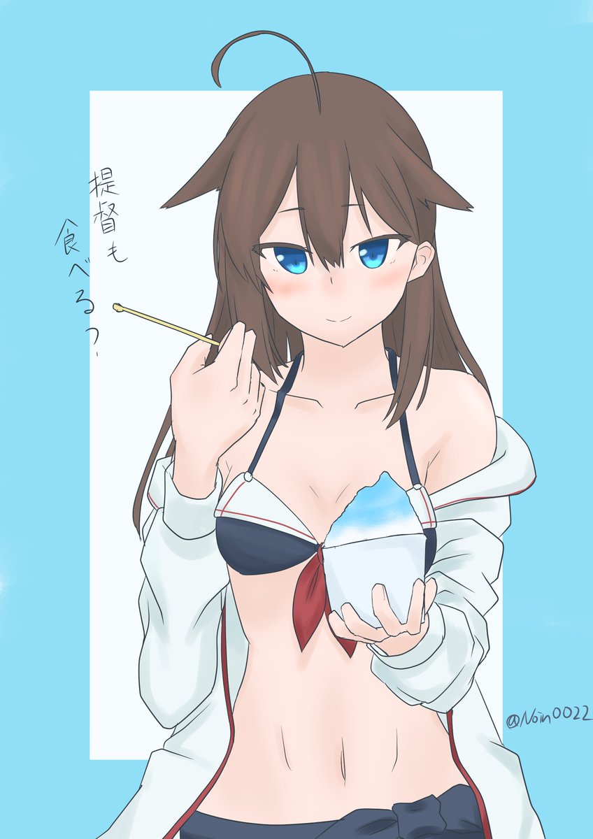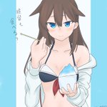 #艦これ版深夜の真剣お絵描き60分一本勝負 #艦これ版真剣お絵描き60分一本勝負_20210812 #時雨 ワンドロ初参加、本日2作目です 暑い日にビーチで時雨とかき氷を食べたい人生でした… さっきの絵と同様、色塗る時間がない…