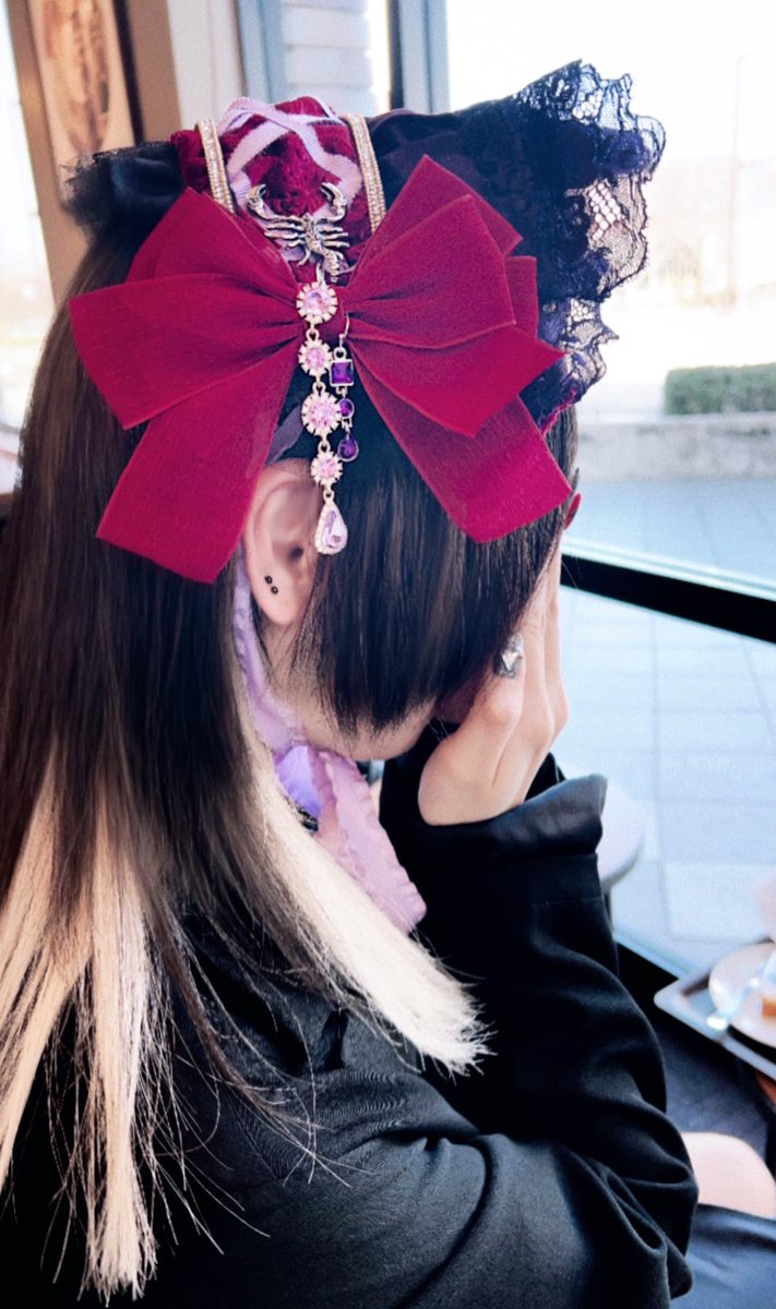 11 58 本日、赤乃様(@nnqxv_app )💯🦂にお依頼していたヘッドドレス🎀を頂きましたわぁ〜〜〜❣️✨️ サロメお嬢💯🦂を連想させるようなパーツ🎀をすべて付けて頂きまして、理想以上の仕上がりに感動しました...🥹💜ホンットに可愛いですわ〜💖‼️ #壱百満天原サロメ #サロメッセージ #サロメ百万展 23/02/07 00:26