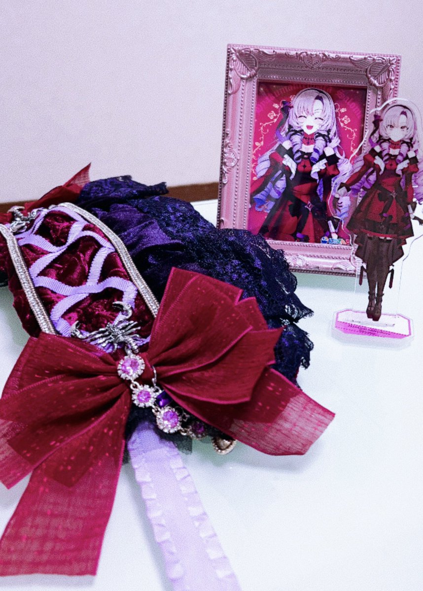 本日、赤乃様(@nnqxv_app )💯🦂にお依頼していたヘッドドレス🎀を頂きましたわぁ〜〜〜❣️✨️ サロメお嬢💯🦂を連想させるようなパーツ🎀をすべて付けて頂きまして、理想以上の仕上がりに感動しました...🥹💜ホンットに可愛いですわ〜💖‼️ #壱百満天原サロメ #サロメッセージ #サロメ百万展