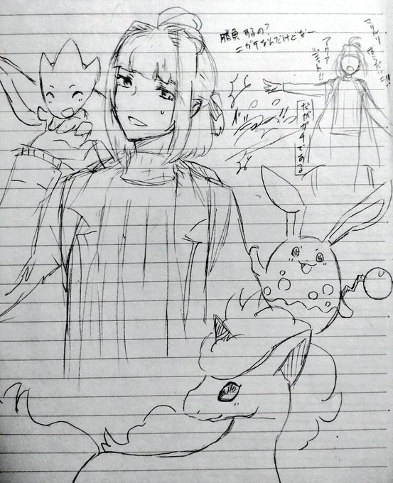 0 1 イタズラ描き夕魔くんとポケモン #たそ月イラスト 23/08/13 21:22