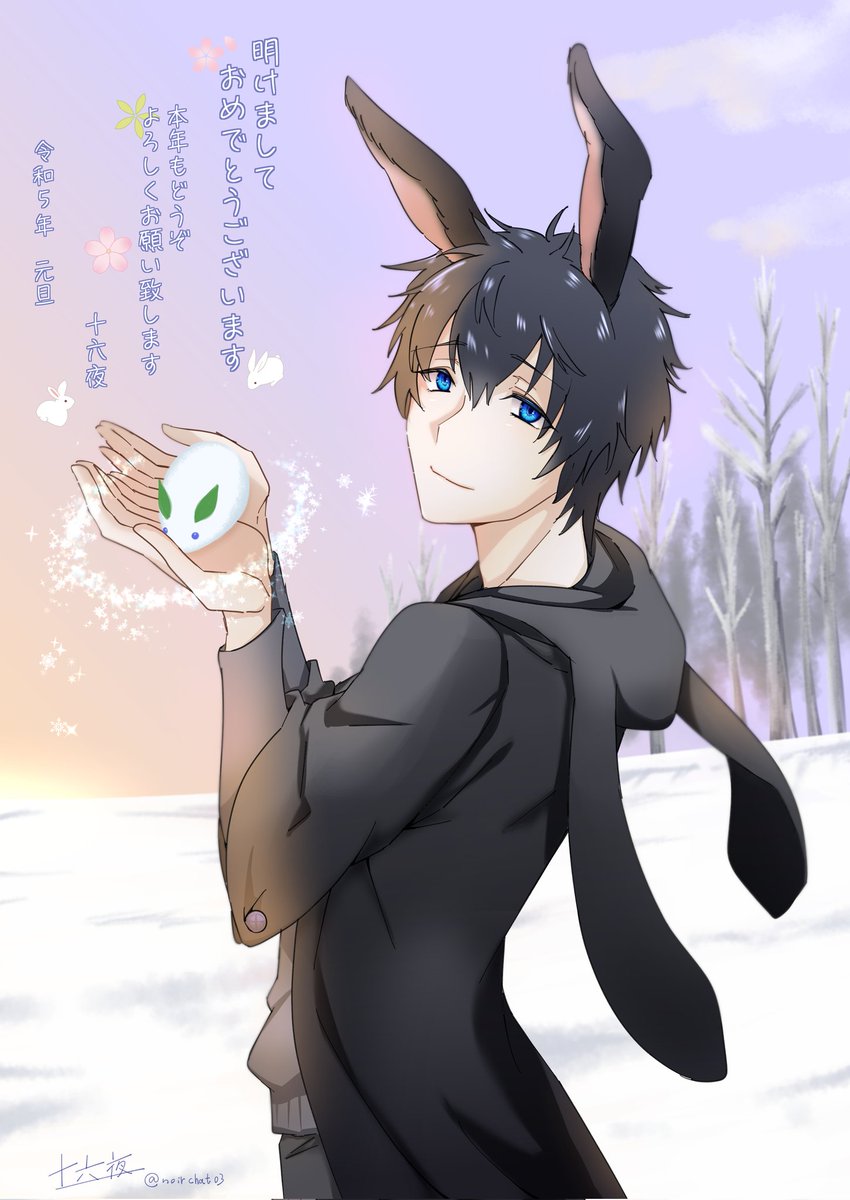 2 18 今年もよろしくお願いしますっ いと面白き年に致しましょう! 今年は兎年なので黒兎さんです🐰 #たそ月イラスト 年とかめっちゃ間違えて投稿してやり直した草。すみません(悲 23/01/01 10:00