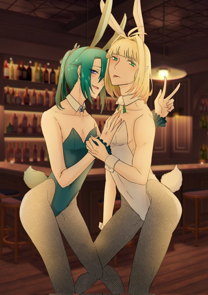 0 1 兎年もかねてバニー晴明&夕魔 ウェイターの仕事中。 あ!よろずやはそういうお店じゃないのですよ。誤解です。 夕魔と晴明の関係性は……今は話せないですね(先走り) #たそ月イラスト 23/01/04 22:05