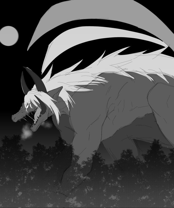 紅「夜鬼くんが鬼獣化してしまいまして…こんなに大きく…」 マスター「何時もよりかリミッターが外れてるな…」 紅「まさか 暴走…!?」 晴明「なんだか壮大なびーじーえむが聞こえて来そうだなぁ」 #たそ月イラスト