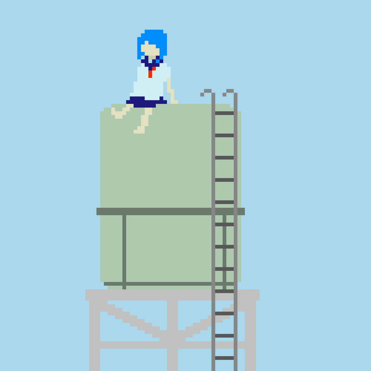 4 15 給水塔 #pixelart #ドット絵 19/06/22 21:00
