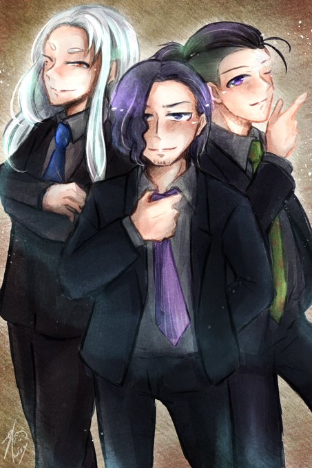 【一次創作FA】藍青玉&鍋川守&新元冬也 #フォロワーさんの推しが描きたい シリーズ。 べーさん( @grpu_hh )宅のお子さんファンアートです!!他の方のに倣ってコメント添えてみました(リプありがとうございました!)