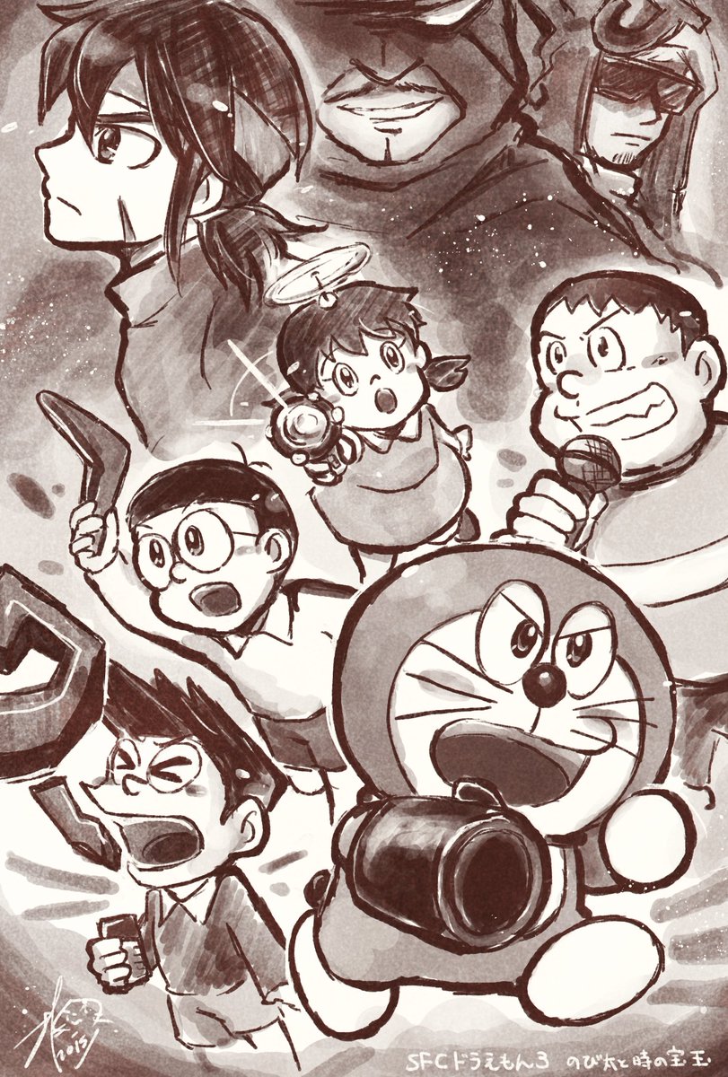 【ドラえもん】 SFCドラえもん3 のび太と時の宝玉 本日15(土) #PixelArtRunners にて、こちらのゲームのRTA走者お二人による並走が見られます!!楽しみすぎて勝手にファンアート的な奴描いてみました