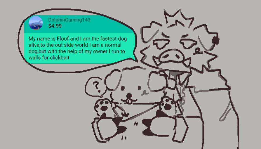 my name is floof i am the fastest dog alive, to the outside world i am a normal dog, but with the help of my owner i run to walls for clickbait #technofanart