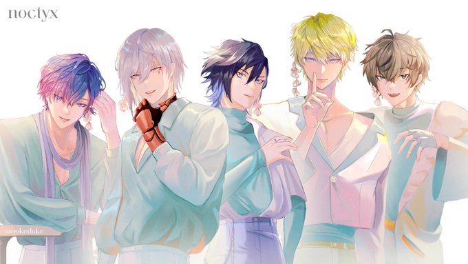 Group pics!!! My friends are on insta as totebaq (Uki), icedcocolatte (Alban), toku.ig (Sonny), and osha.wamai (Yugo) that we ran into by coincidence!! 💜❤️🧡💛💙 (3/3) #noctyx #Artchivist #VioletAtelier #briskart #albanknoxart #AsumArt
