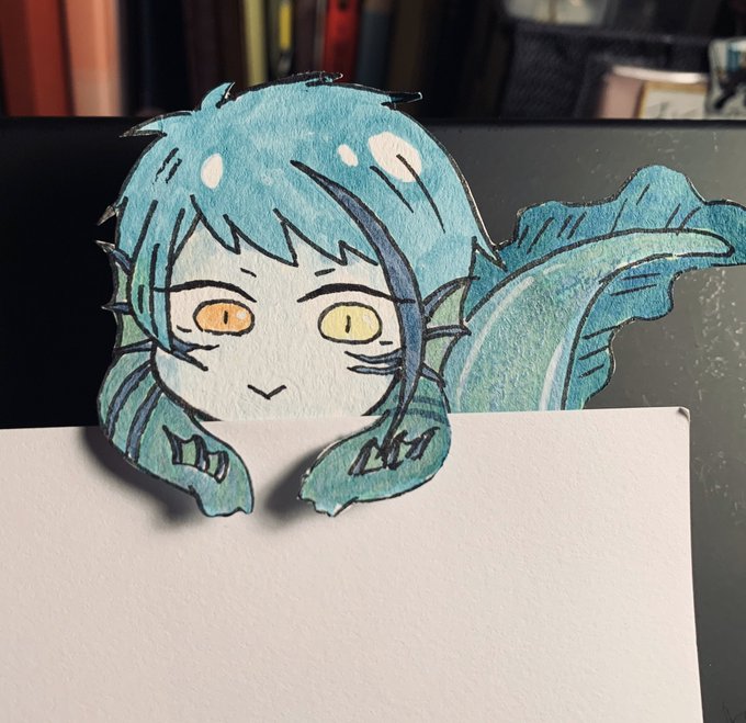 作業しているか監視してくれる稚魚🐬..... コピックの色が限られていてところどころ色が違うの許してほしい.... #twstファンアート