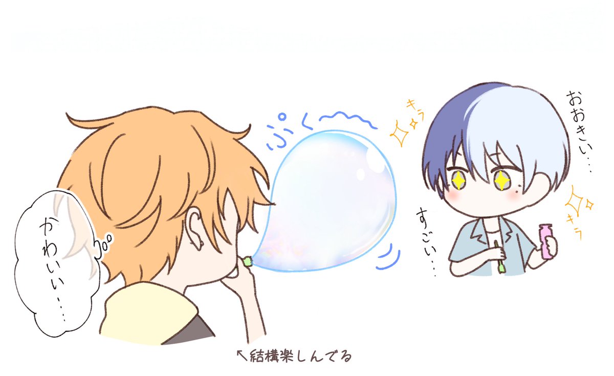 76 410 初シャボン玉の冬弥となんやかんや一緒に楽しむ彰人 (彰冬) 21/08/27 23:05