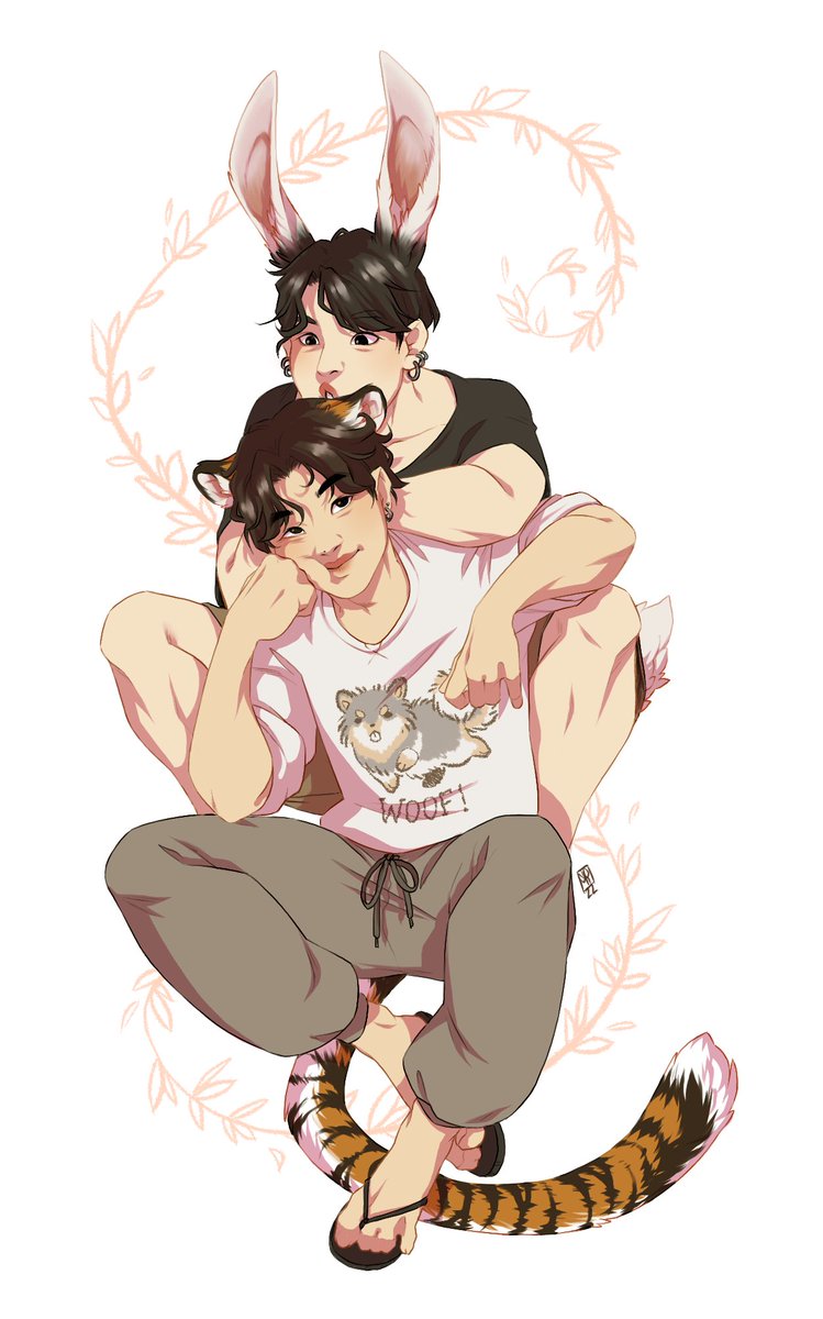 people wanted more hybrid taekook and who am I to deny them that 🐰✨🐯 #taekook #taekookfanart