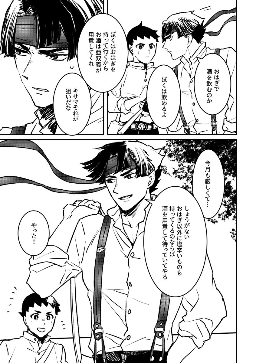 25 107 遅刻で参加です。 お題「半分こ」 いつもこんな感じだな、我々は。 #アソ龍ワンドロワンライ2022 22/11/18 00:08