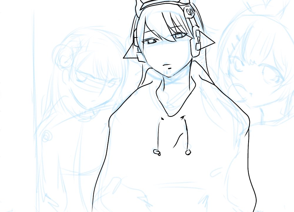 下地だけだとおかゆんに見える図。 まだまだかかりそう。難しいのう #プロテインザスバル #アイビスペイントスマホ勢