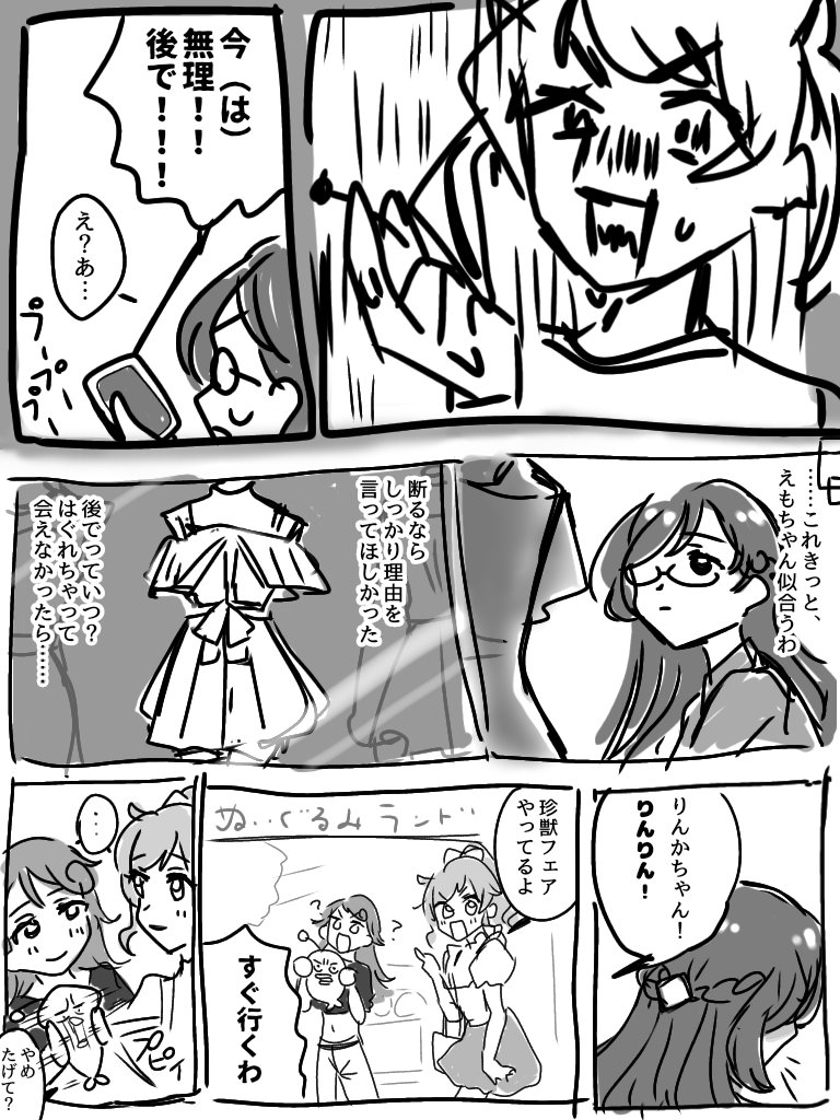 57 154 みらりんめる+えも わちゃわちゃマンガです。りんえもメインになっちゃった🤯💦 1/2 21/11/21 18:17