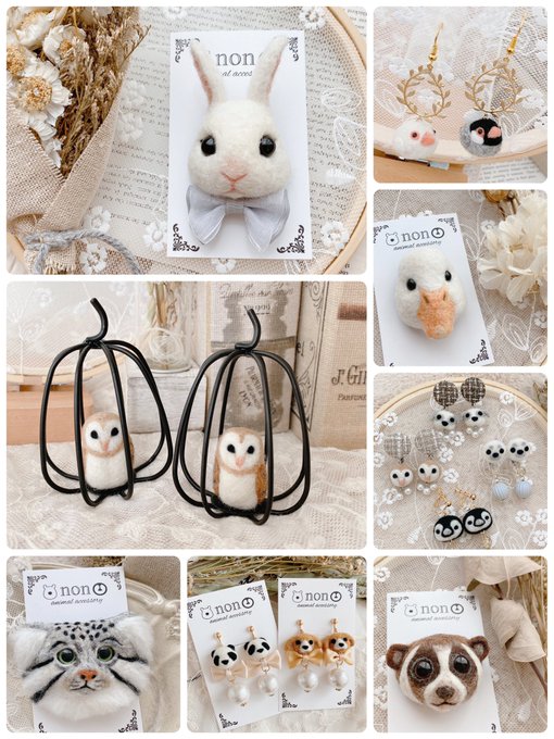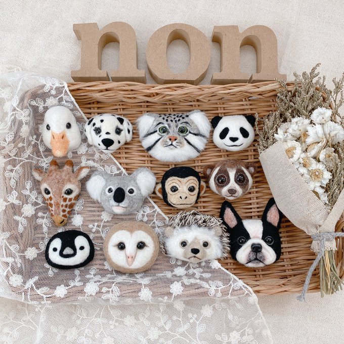 #4月になったのでフォロワーさんに自己紹介しようぜ 羊毛フェルトで動物のブローチやアクセサリーを作っています🐑 現在1歳児の育児&第二子妊娠中のためのんびりペースですが、今年度もよろしくお願いします🌷