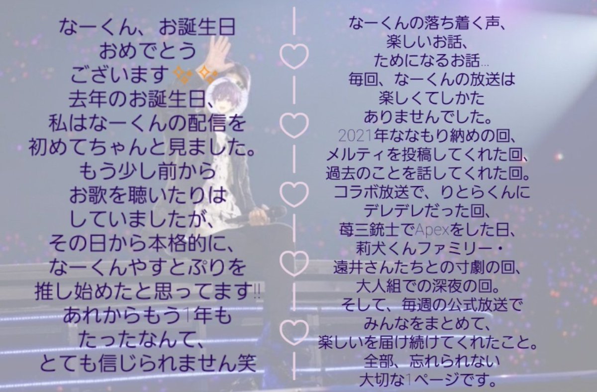 💜🐇|| #なーくん へ。.:*:・'°☆ お誕生日おめでとうございます✨✨ たくさんたくさんありがとう。 これからもずっと応援しています!! 今年1年、良い年になりますように…✨ 来年は一緒にお祝いできたら嬉しいです(*^^*)💜 #なーくん誕生祭2022 #ななもりぎゃらりー