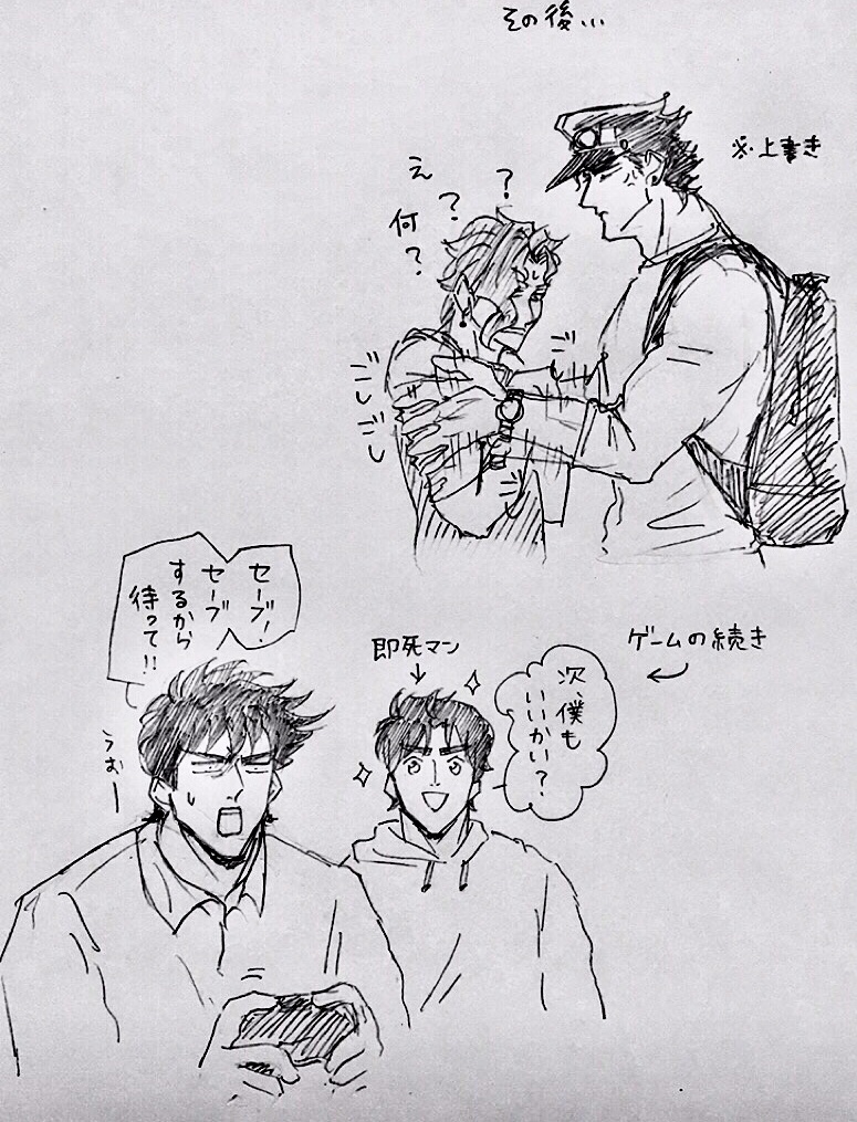 ゲ-ムの詰んでたとこカキョにやってもらってるジョセと 嫁の位置にざわざわするタロ氏