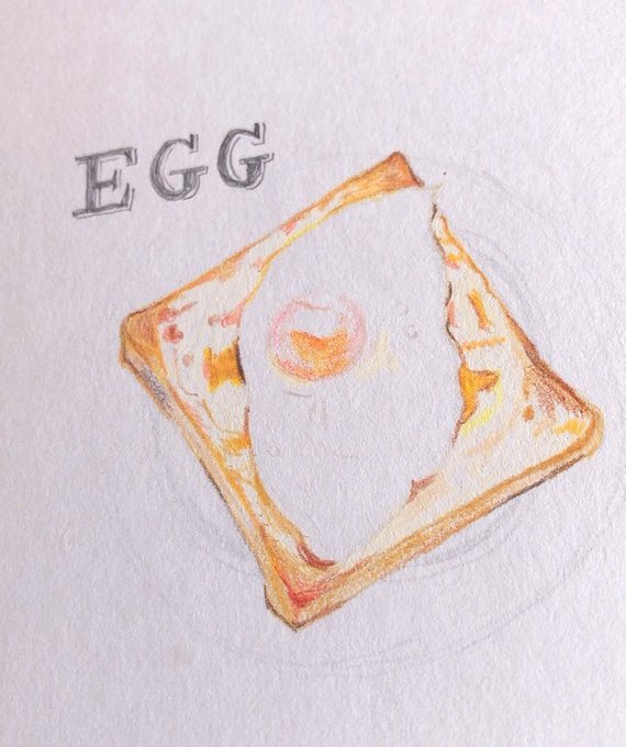 1 16 目玉焼きの色合いが・・♡ 少しは私の技術も 進化してるかも! ✧*。(ˊᗜˋ*)✧*。 自分で自分を褒めてあげよう♡ #絵描 #色鉛筆 #トースト #卵 #描き途中 21/06/19 12:44