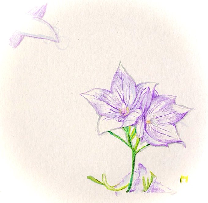 2 33 この花が好き♡ 『桔梗』 朝から暑いと嫌になりますね💦 こまめな水分補給を 忘れずに୧⃛(๑⃙⃘◡̈๑⃙⃘)୨⃛ #桔梗 #手描きイラスト #色鉛筆 #絵を描くことが好き 21/07/21 10:32