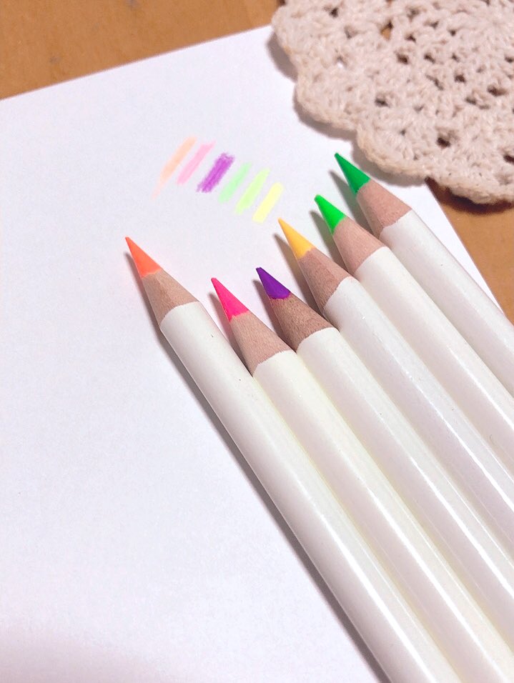 蛍光色の色鉛筆購入してみた ☺️✨✨✨ いつも使ってる 色鉛筆と違うメーカーだから どんな感じなんだろう? ちょっとワクワク✧*。 何描こうかな? #色鉛筆 #蛍光色