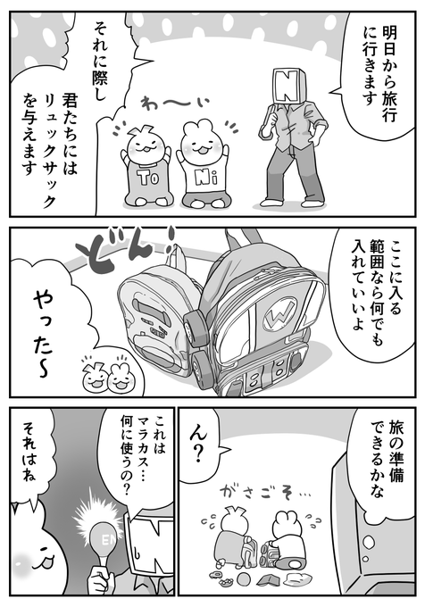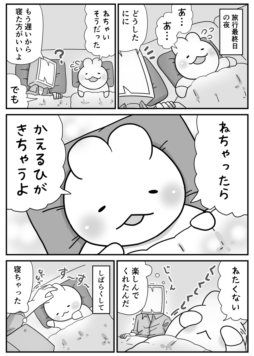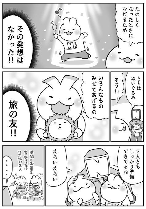 せっかくなので旅行漫画を執筆中。 こちらは妻がアイロンビーズで作ってくれたににとと。 旅先にも連れてきました。