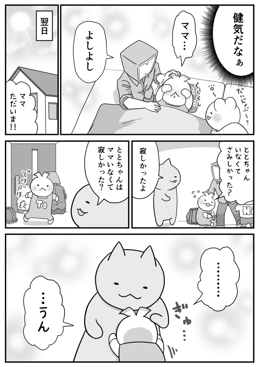 744 7453 日々のつぶやき。 でもいざ幼稚園とかで息子らと離れているとすぐ寂しくなってしまう。 23/08/06 20:50