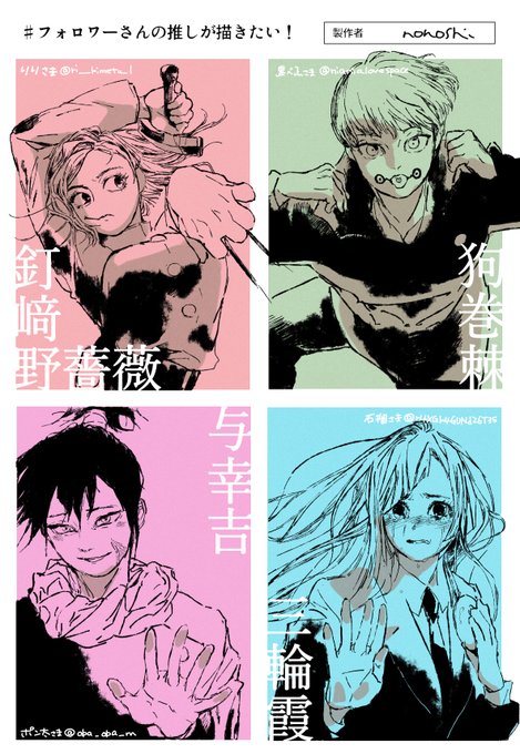 #フォロワーさんの推しが描きたい 大きく描きたくてテンプレ自作💦4枚ずつアップします😇リプいただいた順番でなく申し訳ないのですが、呪術廻戦が4名様おられたので!ありがとうございました~🙇♀️ @ri___kimetu_l @nianialovespace @r4XGk4GUNdZ6T35 @oba_oba_m