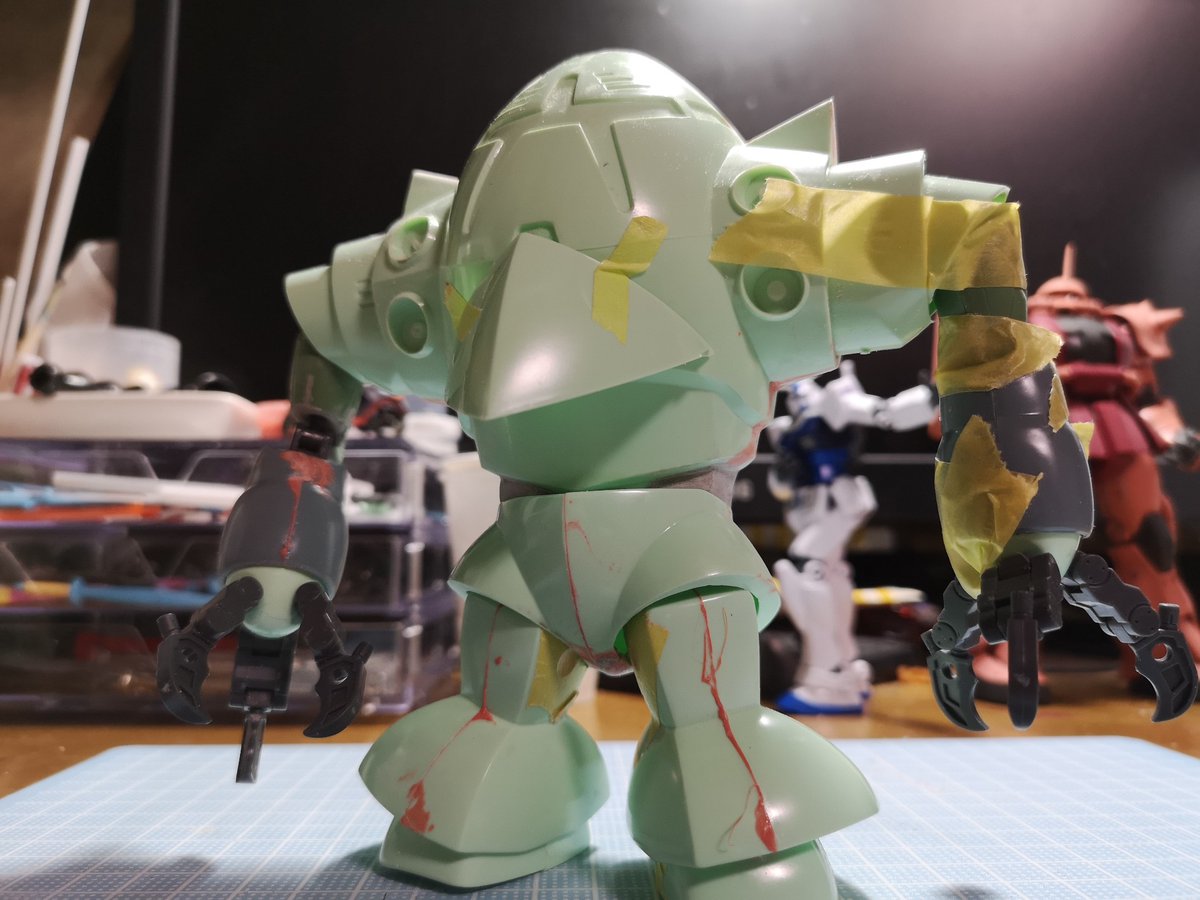 タコザクの作例は今までにいっぱい出てるし、諸先輩方の作例のほうが私よりずっと綺麗でカッコよく仕上がってると思うので、こんなアプローチの「らしくない」作例だって良くない? #タコザク #ガンプラはどんな自由な発想で作ってもいいんだ #ガンプラの画像貼るとRTされると聞いて
