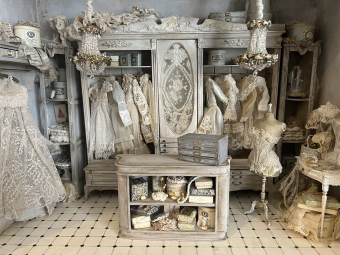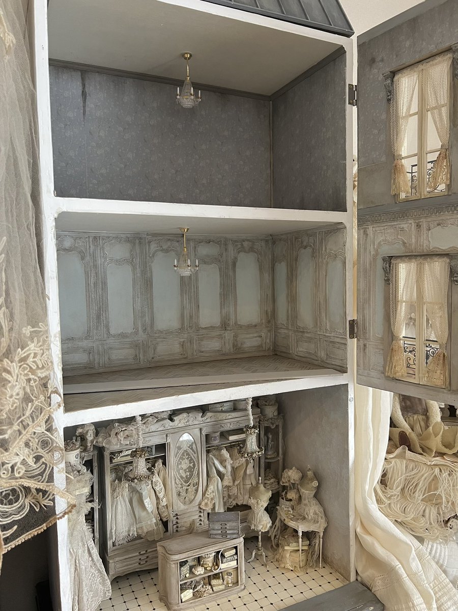 やっとドールハウス持って帰ってきました。まだ一階のお店しか家具を作ってないので、これから他の部屋の家具を制作していこうと思います。 2階はサロンっぽくして、 3階はアトリエとかかなー🤔