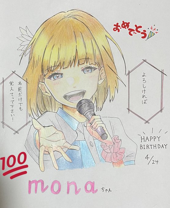 2 12 monaちゃん 4月24日 誕生日おめでとう🎂🤍 これからもmonaちゃん推していきます🫶 #HoneyWorks #mona #mona生誕祭 #ハニワ美術部 22/04/24 00:00