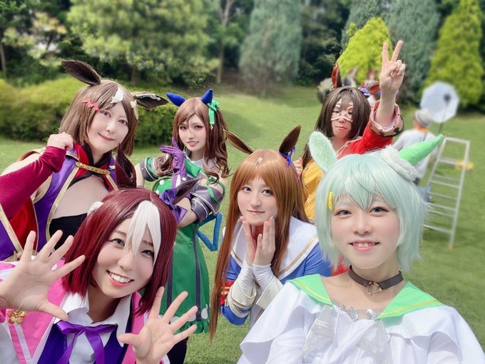 クラシック三強で撮ってるとこを撮られていた神的なオフショ🫣💚🩷🩵 グラスちゃん リリスさん(@Lilyth_IX ) スペちゃん ゆーささん(@yusa___yusa ) セイちゃん ワイ 📸千歳忍(@chitose_shinobu ) #230527アドヴァンスステークス