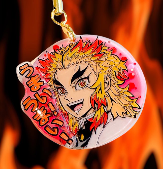プラ板で煉獄さん作りました🔥♥️ 髪の毛苦戦しました😇 仕上げにレジンでぷっくりと仕上げてます🥰 うまい!うまい!🍱😋 #鬼滅の刃イラスト #鬼滅の刃お絵描き #鬼滅の刃ハンドメイド #鬼滅の刃好きな人と繋がりたい #鬼滅の刃好きさんと繋がりたい
