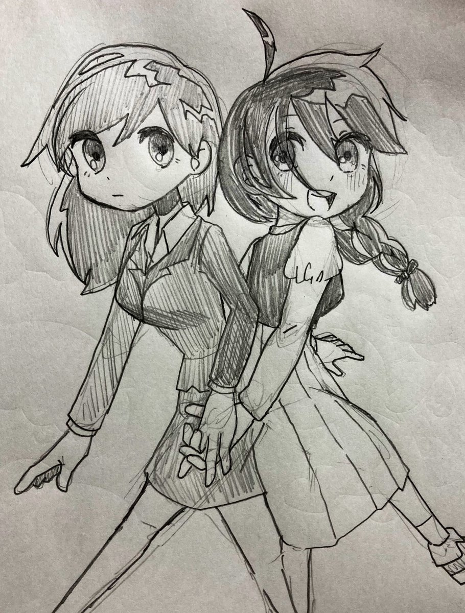 ずんだもんと東北きりたん #ずんだもん #東北きりたん #アナログイラスト #イラスト #落書き