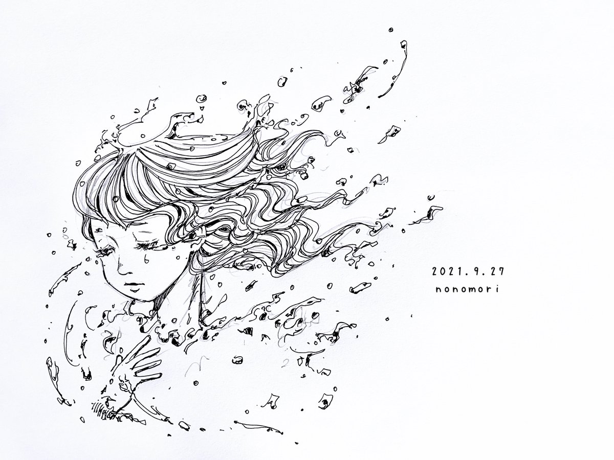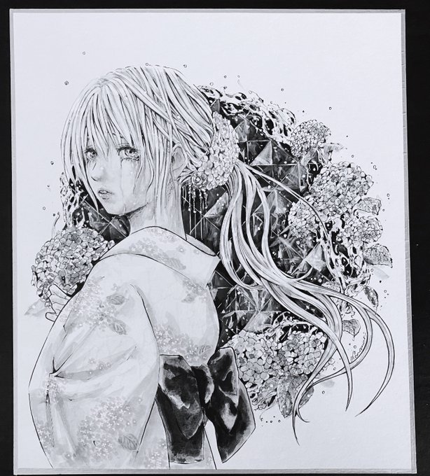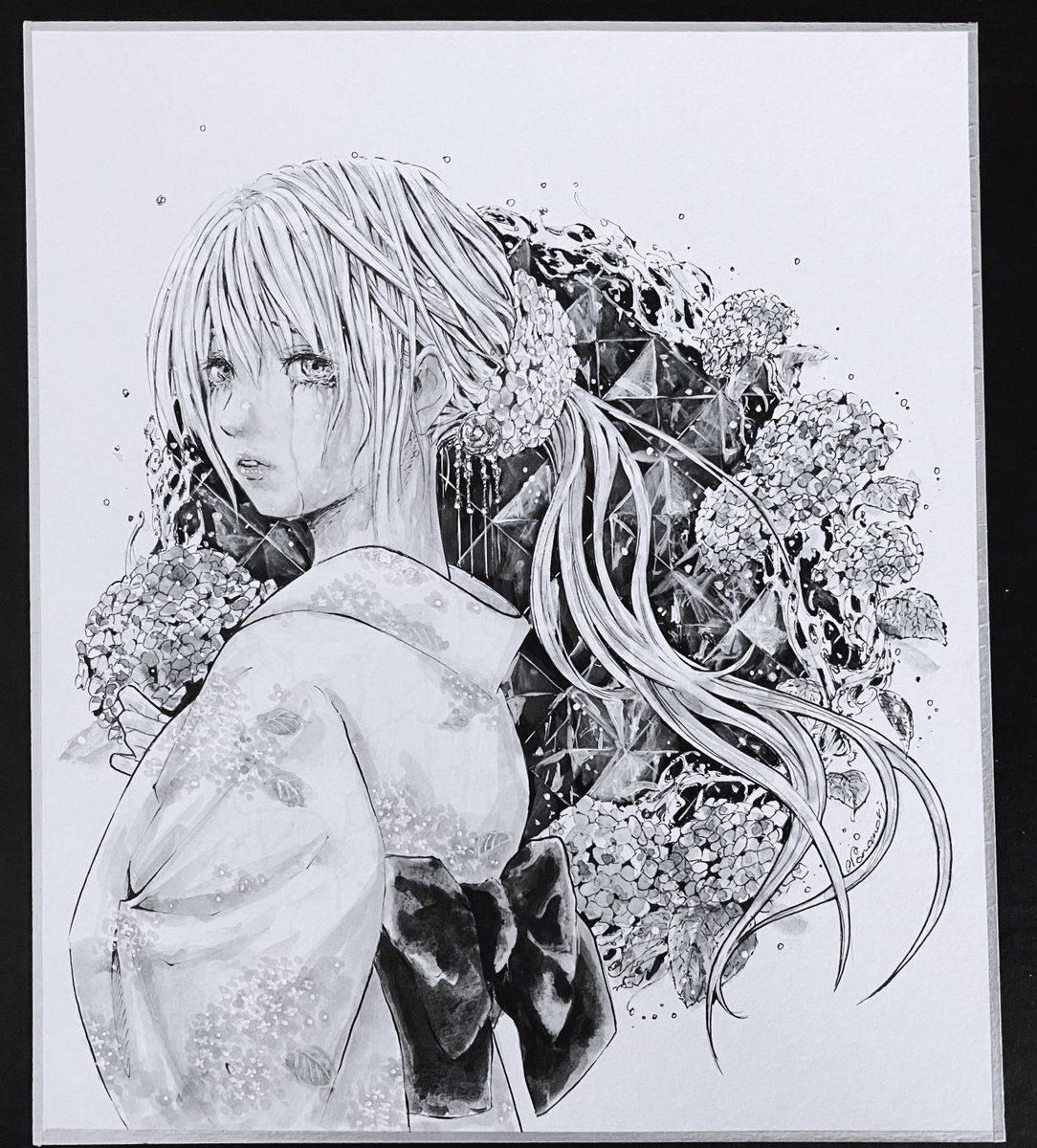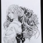 4 25 #イラスト アナログ 庭の紫陽花が咲いた時期に描いたイラスト。元はカラーだけどモノクロにした方が個人的に好きだった。 22/07/07 23:02