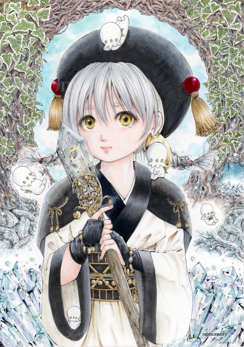 #イラスト コピック。ケント紙ボード。 スキャンしての色調補正って難しい…仕上げにちょっと金色を入れました。部屋が電球色なのでスマホ撮影すると赤みがかってます。