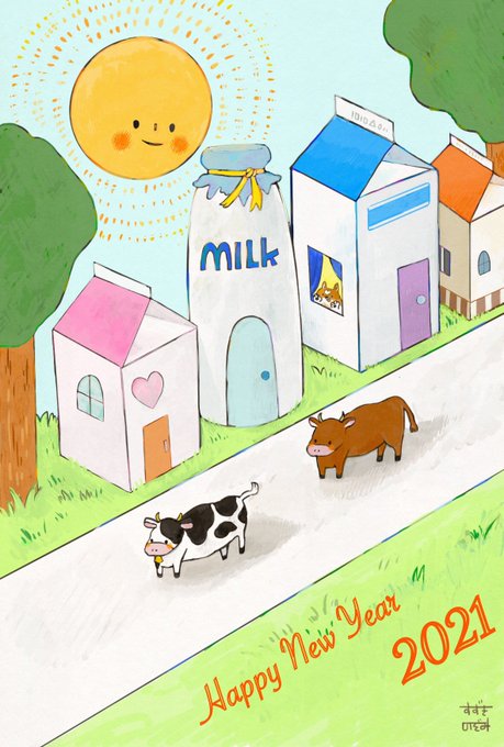 3 21 描き初めの1枚。何とか年賀状イラスト完成しました〜! 21/01/02 00:25