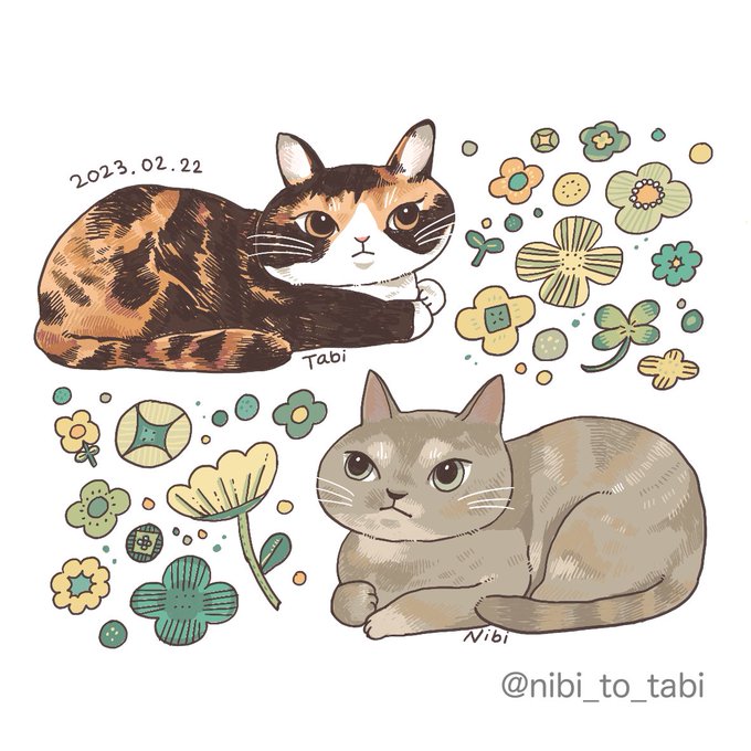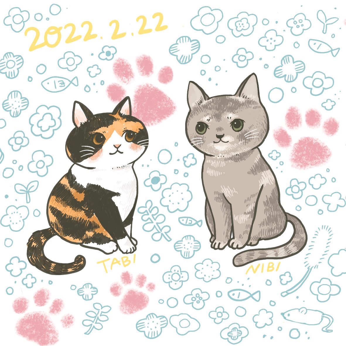 2 14 猫の日なのでうちの猫ちゃんズ描きました🐈🐈⬛ #猫の日 #スーパー猫の日 22/02/22 08:08