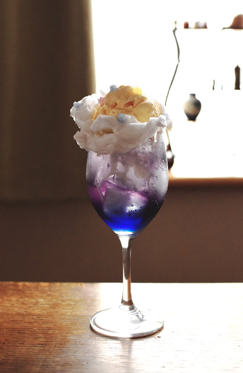 32 182 今朝は蟹さんレシピの雷雲の梅雨パフェもどきを作りました ゼラチン足りなかったのでクリームソーダです… 湿度が高くて雲の中綿を取り出すのが大変でした #蟹拓 #蟹営業 21/06/04 14:11