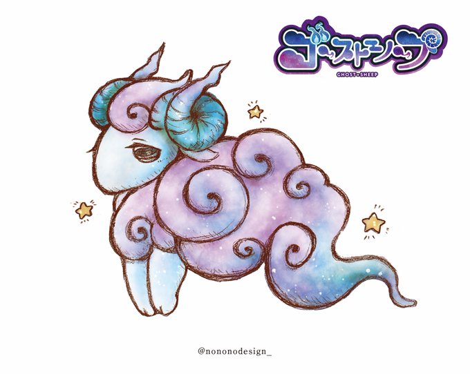 今回制作したのは前に落書きで描いた オリジナルキャラクターのゴーストシープです イラストを完成させて、タイポグラフィを制作しました🥰 配置したらポケモンパンのシールみたいになった #イラスト #ロゴ #タイポグラフィ #春の創作クラスターフォロー祭り #私の絵柄が好みって人にフォローされたい