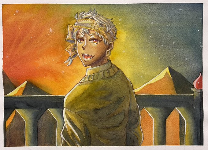 【黄金に染まる君】 今回は黄色い時間の似合うカリムくんにしました☺️ 空が藍色に染まっていく直前の時間が個人的に好きです。 #ゆるっとアナログ企画 #ひと時の色彩_twstファンアート #twstファンアート